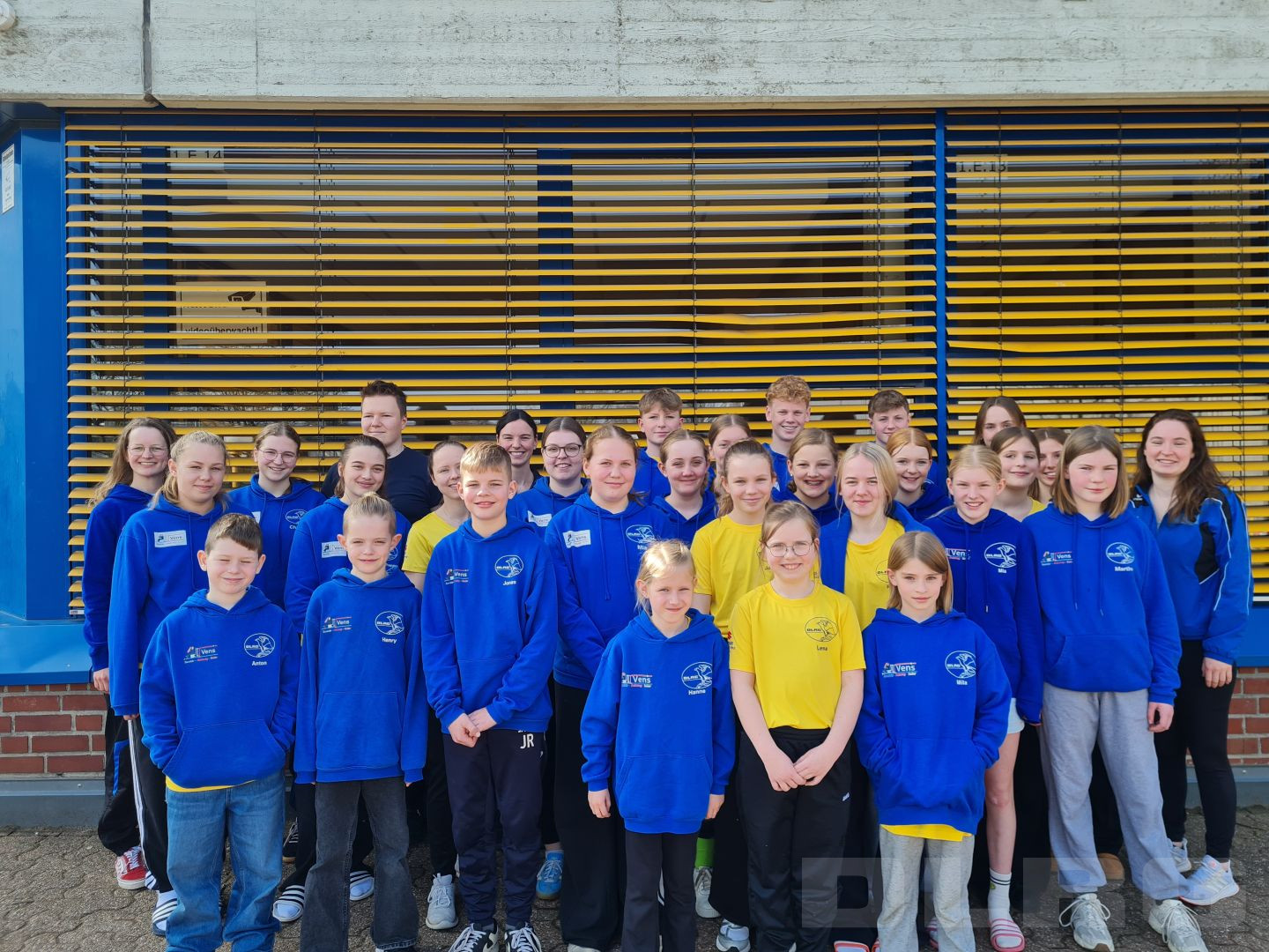 Im Fildekenbad in Bocholt fanden am vergangenen Sonntag, die Bezirksmeisterschaften im Mannschaftswettkampf statt. Von 14:00 Uhr bis 18:45 Uhr traten zahlreiche Teams in verschiedenen Altersklassen gegeneinander an. Vor den gut gefüllten Tribünen sorgten viele Eltern und Unterstützer für eine großartige Stimmung und feuerten die Schwimmerinnen und Schwimmer lautstark an. In spannenden Läufen zeigten alle Teams großen Einsatz und Teamgeist.