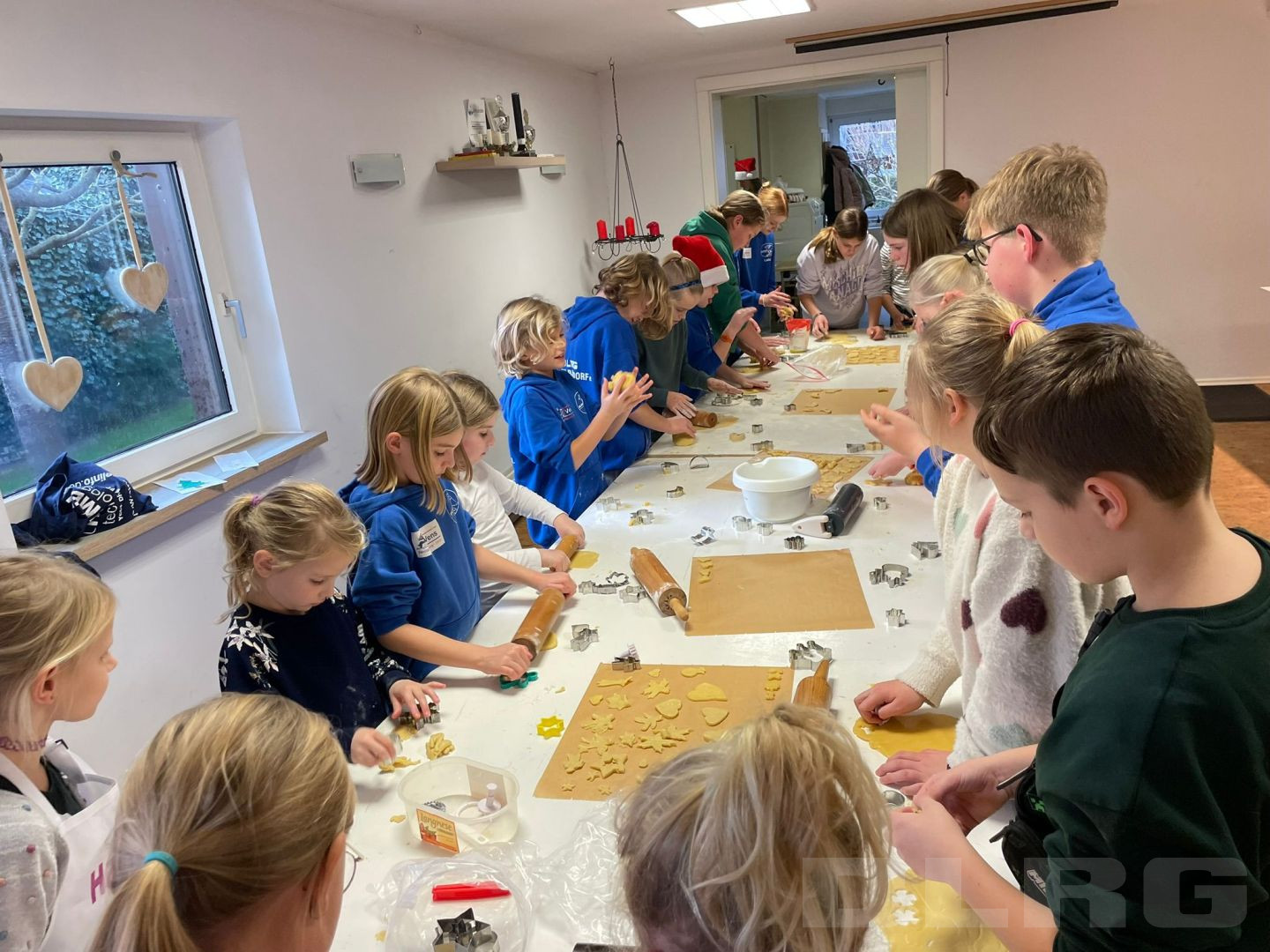 Mit verschieden Plätzchen Teigen, die von den Kindern selbst mitgebracht wurden.